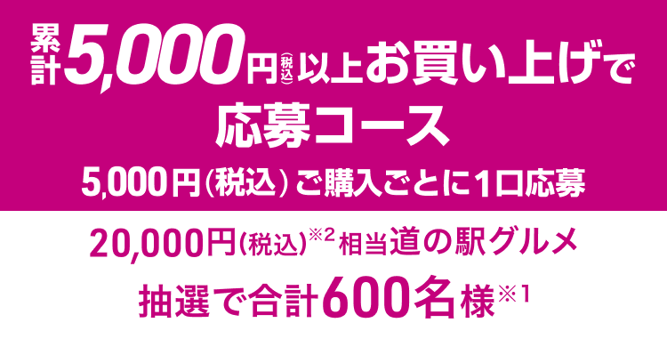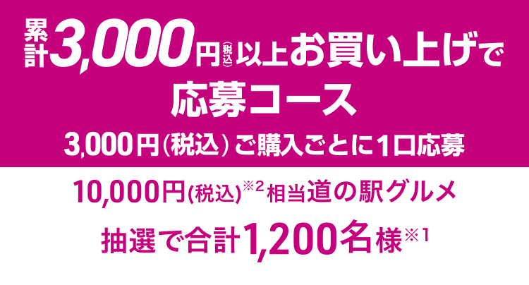指定金額以上ご購入で応募完了!各コース指定金額 (税込) ご購入ごとに1口応募 (応募口数に上限はございません)