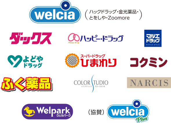 対象店舗:ウエルシア(ハックドラッグ、金光薬品、とをしや、Zoomore)、ダックス、ハッピー・ドラッグ、マルエドラッグ、よどやドラッグ、スーパードラッグひまわり、コクミン、ふく薬品、 COLOR STUDIO/MASAYA、 NARCIS、ウエルシアプラス