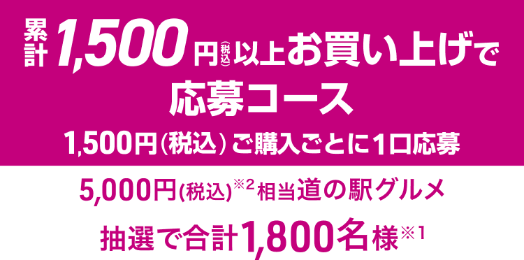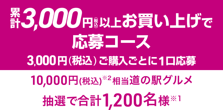 指定金額以上ご購入で応募完了!各コース指定金額 (税込) ご購入ごとに1口応募 (応募口数に上限はございません)